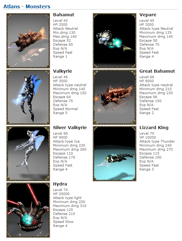 Podwodny 艣wiat. Wej艣cie do Atlans znajduje si臋 w Norii. Jest to mapa dla do艣wiadczonych przeciwnik贸w, gdy偶 艂atwo tu zosta膰 zaatakowanym przez podmorskie stworzenia, kt贸re bywaj膮 pot臋偶ne. W bardzo dawnych wersjach Beta mo偶na by艂o wej艣膰 do niej tylko w party. Kraina ta zosta艂a dodana po jakim艣 czasie od startu serwera globalnego. Najsilniejszym potworem na tej mapie jest "Hydra".